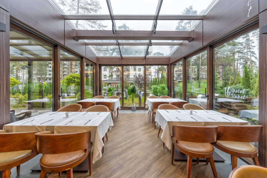 Hotel Buket u okviru svog restorana raspolaže sa 120 sedećih mesta, moderno opremljenom kuhinjom i ljubaznim osobljem spremnim da vam u svakom trenutku pruži pomoć u odabiru specijaliteta, kao i vina iz naše bogate riznice. Pored ovog, takođe poseduje i izdvojeni deo restorana do 40 mesta, idealan za poslovne sastanke i ručkove.
