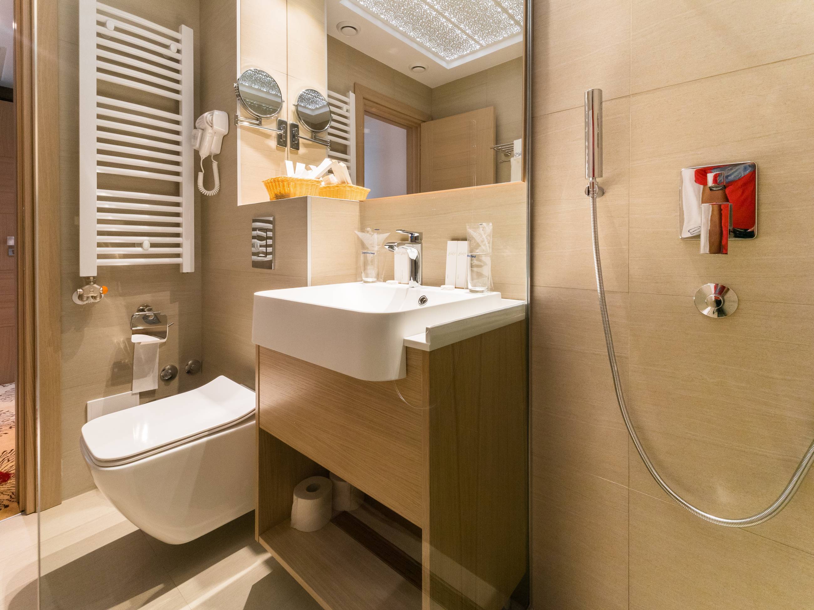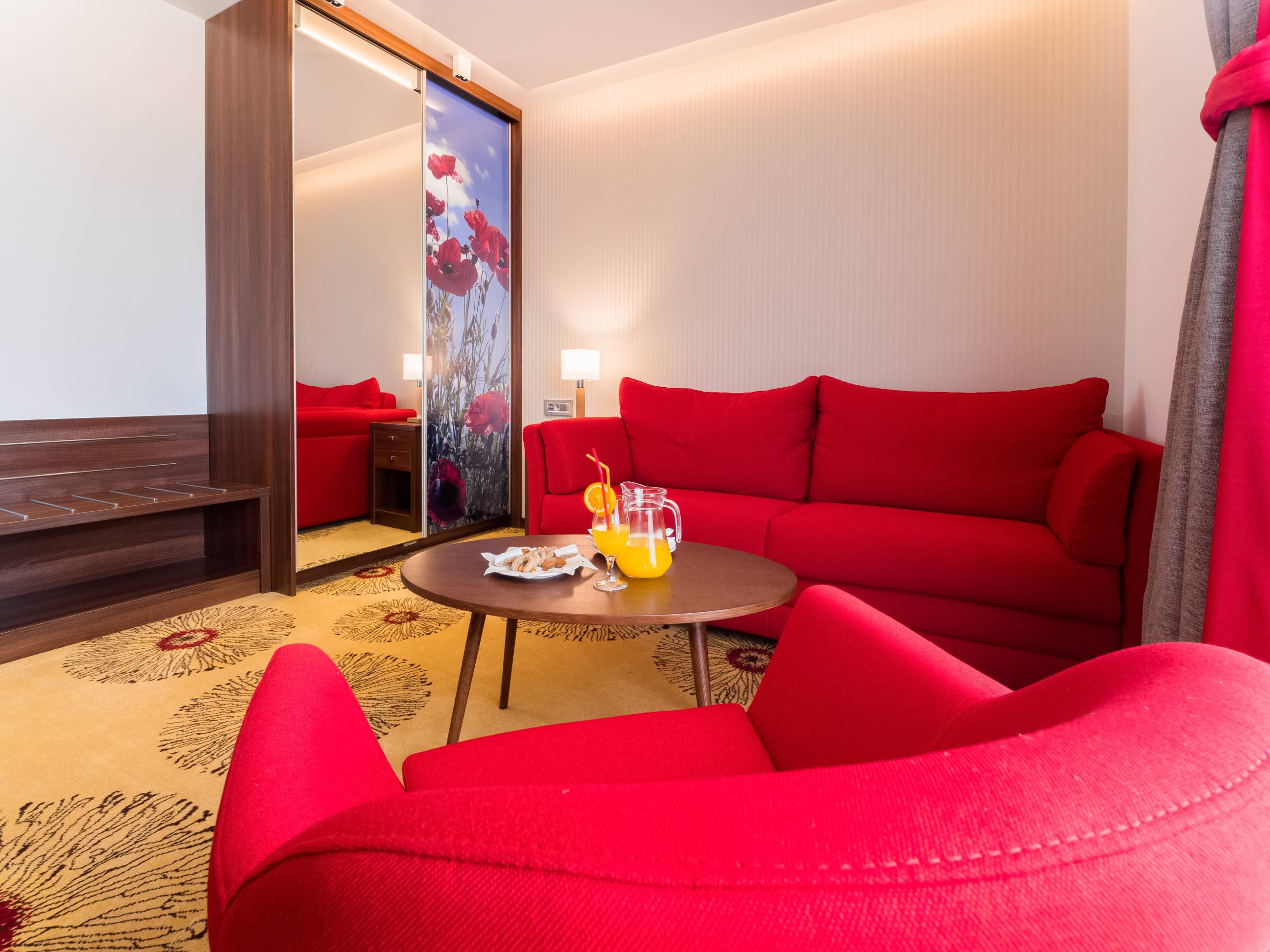 Kapacitet: 1 - 4 osobeSpavaća soba i dnevni boravakGarnitura za sedenje i spavanje u dnevnom boravkuVeličina 31 – 38 m2Francuski ležaj ili dva odvojena ležajaBalkonLCD i kablovska televizijaWifiKlimaMinibarSefTelefonTuš kabinaPodno grejanjeSušači peškiraBade mantilPapučeFenToaletni stočić sa ogledalomDečiji krevetac na zahtev gosta